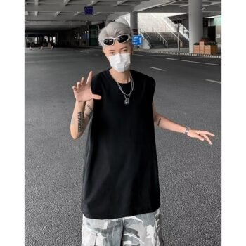 Vest men’s summer trendy solid color t-shirt student plus size sports bottoming shirt loose breathable sleeveless top