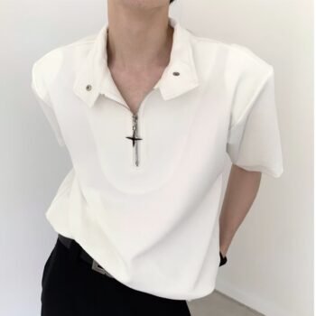 2024 design niche stand-up collar solid color t-shirt men’s polo shirt summer loose short-sleeved top simple high-end trendRated 5.00 out of 5