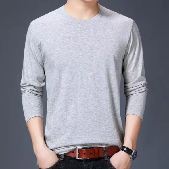 Solid color autumn and winter men’s long-sleeved T-shirt round neck bottoming shirt all-match solid color T-shirt Korean style trend