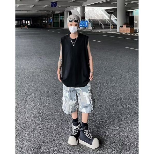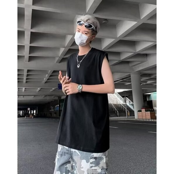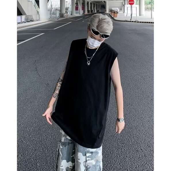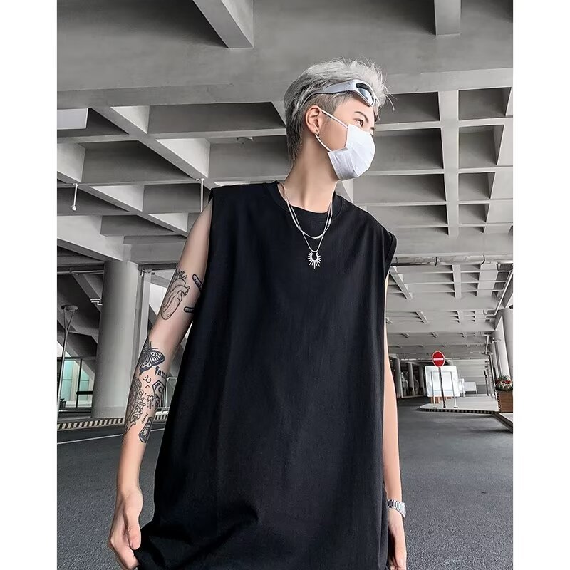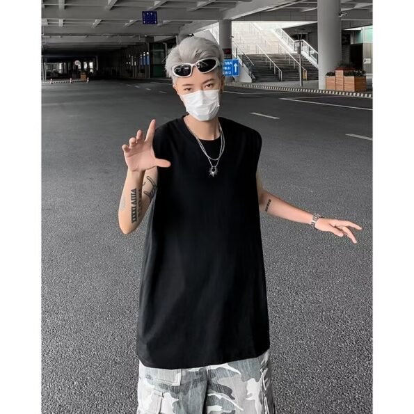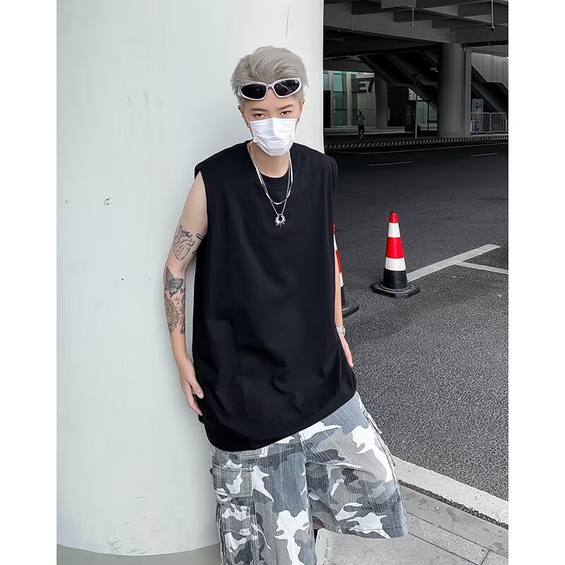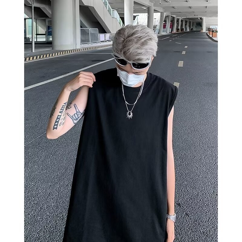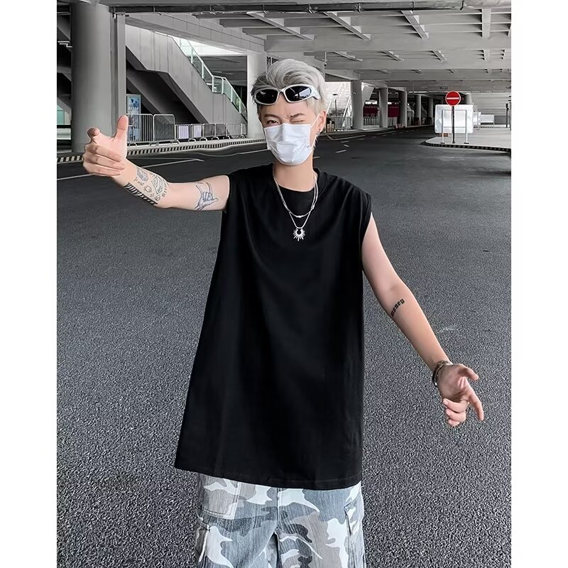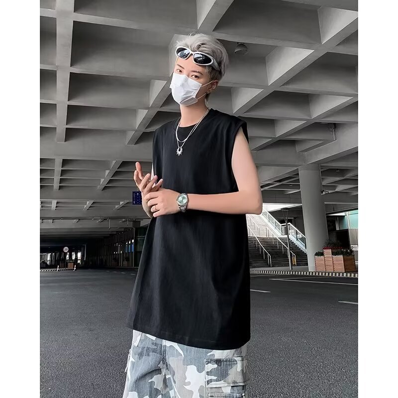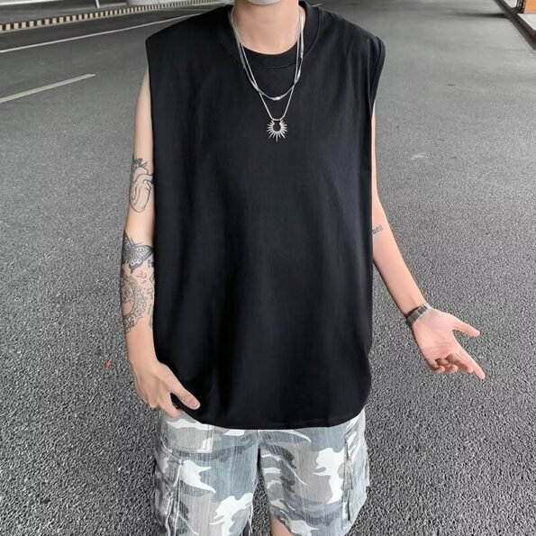Vest men’s summer trendy solid color t-shirt student plus size sports bottoming shirt loose breathable sleeveless top