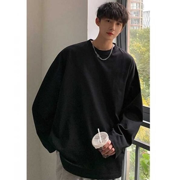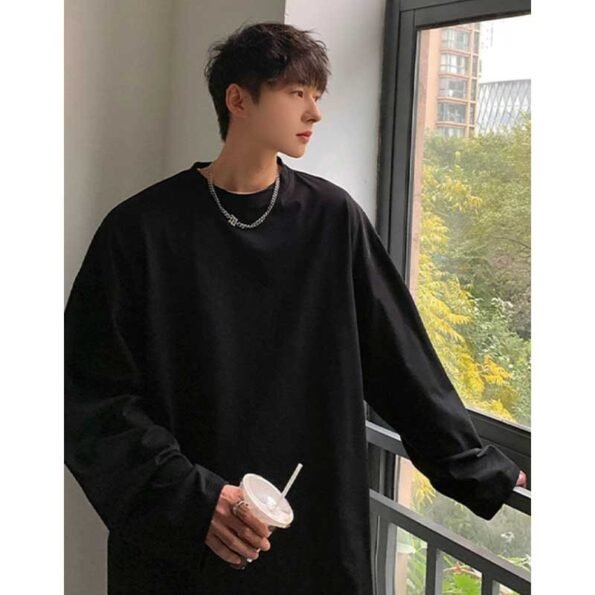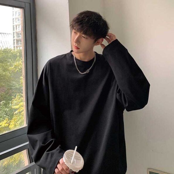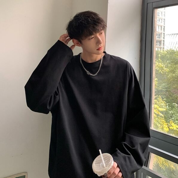 Solid color T-shirt men’s summer thin fashion brand oversize long-sleeved sweatshirt spring and autumn heavyweight inner bottoming shirt