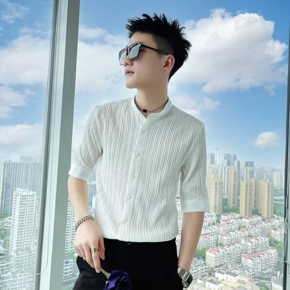 Korean style new simple slim round neck texture casual sweater men’s short-sleeved shirt solid color T-shirt trend