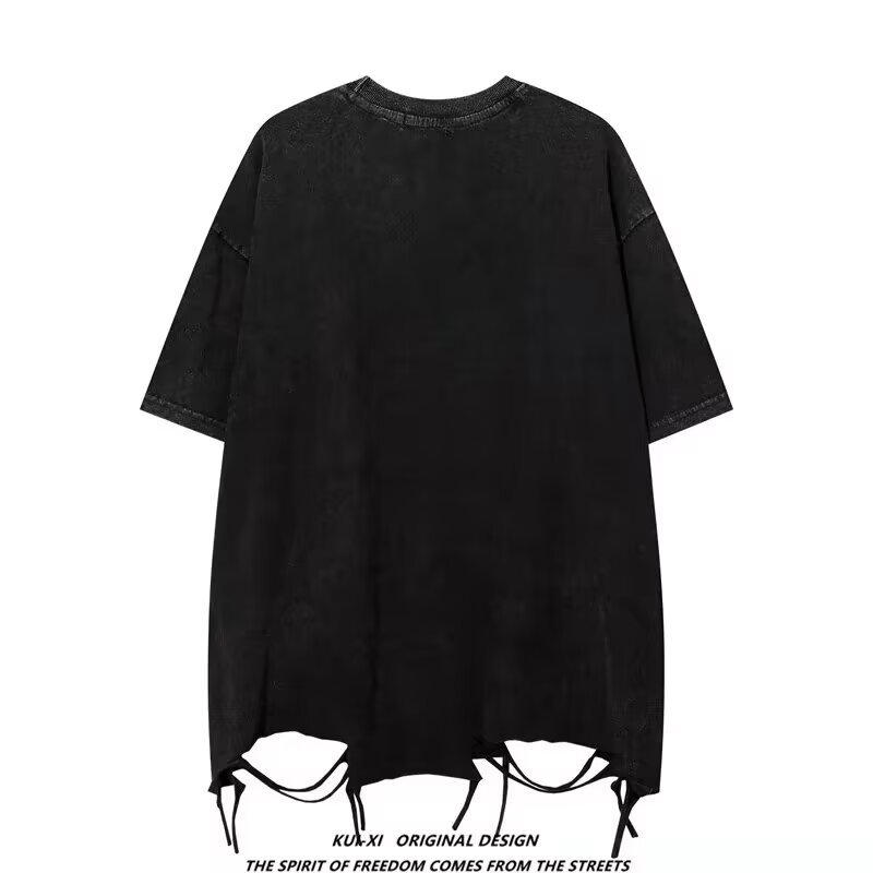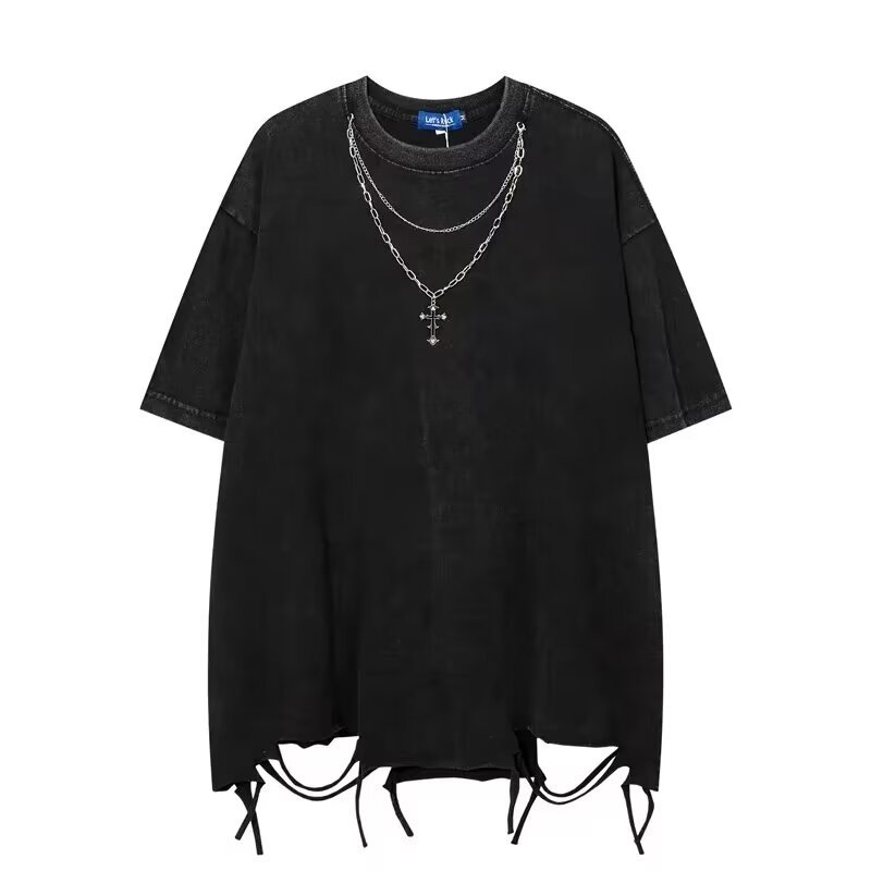 Be the first to review “2024 European and American high street necklace design solid color T-shirt men’s trendy brand hip-hop loose style ripped short sleeves”